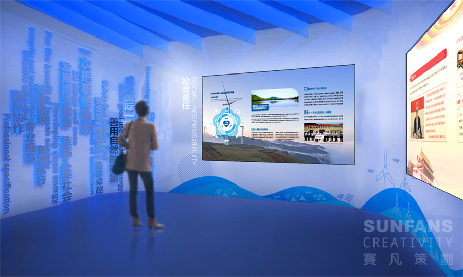 賽凡策劃長(zhǎng)期為中國(guó)廣核集團(tuán)提供空間展示服務(wù),此次為新能源公司設(shè)計(jì)的企業(yè)展廳方案,以中廣核集團(tuán)“善用自然的能量”核心文化出發(fā),突出新能源公司屬性,充分應(yīng)用高科技交互展示手段,綜合展示了新能源公司勇于創(chuàng)新、奮力拼搏的企業(yè)文化和突出業(yè)績(jī),將成為新能源公司對(duì)外宣傳展示的重要窗口。