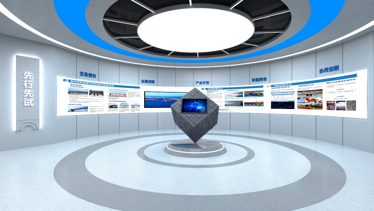 第二展區(qū)則聚焦于河北省自貿(mào)區(qū)的特色與亮點(diǎn),創(chuàng)新性地設(shè)計(jì)了CAVE空間,利用先進(jìn)的沉浸式數(shù)字影片技術(shù),為觀眾帶來一場(chǎng)視聽盛宴,生動(dòng)展現(xiàn)自貿(mào)區(qū)的發(fā)展歷程、制度創(chuàng)新及未來展望,讓人仿佛穿越時(shí)空,親歷自貿(mào)區(qū)的每一次飛躍。