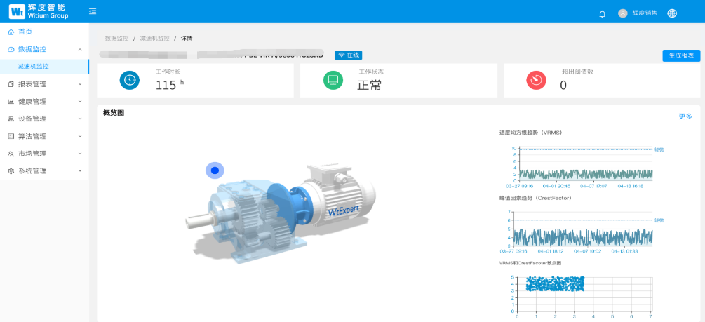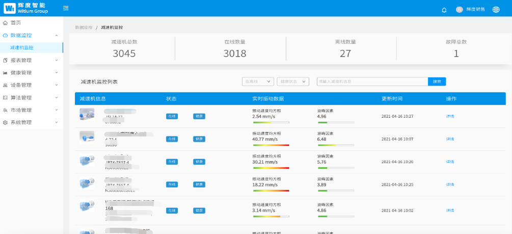 According to the problems encountered in the reducer industry,Witium launched the "reducer fault prediction system solution", which carries out the health status analysis and early warning fault analysis of the reducer and host equipment for the monitoring of the reducer operation status on the user's site, forms a professional reducer fault prediction and health diagnosis report, and gives maintenance suggestions. Witium 's reducer fault prediction solution brings great commercial value to users: