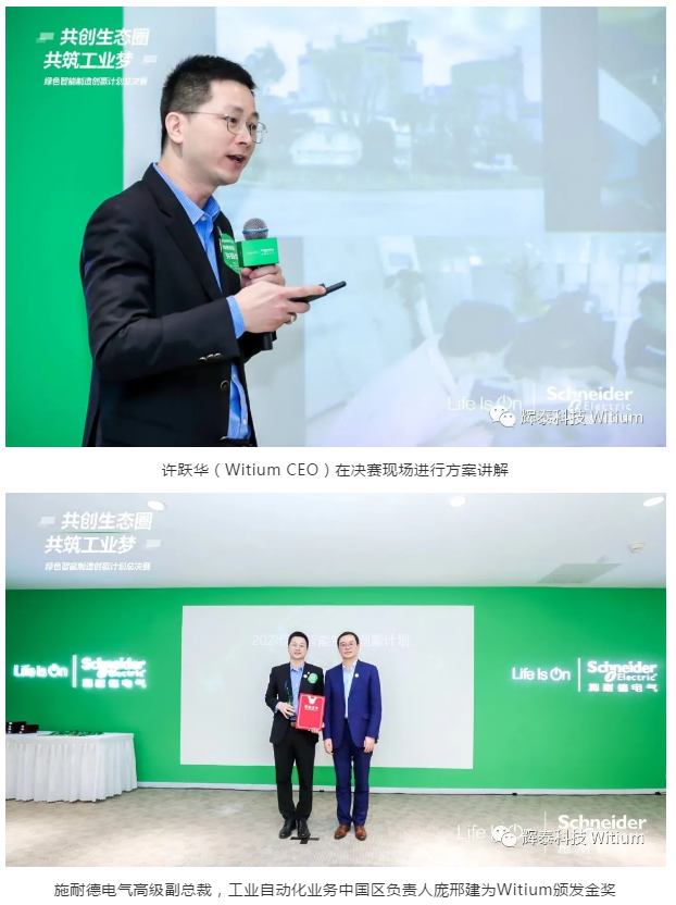 決賽環(huán)節(jié)中,施耐德電氣水泥建材和Witium的團(tuán)隊(duì)一同分享“水泥行業(yè)關(guān)鍵設(shè)備預(yù)測(cè)性維護(hù)”合作中的經(jīng)歷與收獲,以及對(duì)未來1-10、10-100階段的規(guī)劃與期許。整體方案為水泥建材行業(yè)客戶減少因設(shè)備異常導(dǎo)致的非計(jì)劃停工次數(shù)、降低過維修/欠維修的運(yùn)維次數(shù)、以及助力水泥行業(yè)抵御潛生產(chǎn)風(fēng)險(xiǎn),提升設(shè)備稼動(dòng)率、經(jīng)營(yíng)韌性等。聯(lián)創(chuàng)方案的完整性、創(chuàng)新性、客戶滿意度、未來復(fù)制性都獲得評(píng)委的點(diǎn)贊與好評(píng)。最終,Witium榮獲了綠色智能制造創(chuàng)贏計(jì)劃第二屆的金獎(jiǎng)。