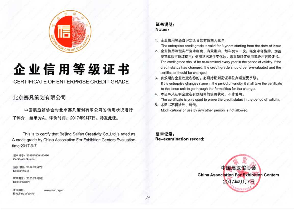 賽凡首頁 >>新聞 >>COMPANY NEWS 公司動態(tài) >>用品質(zhì)說話 賽凡獲得中國展覽館協(xié)會A等級評定