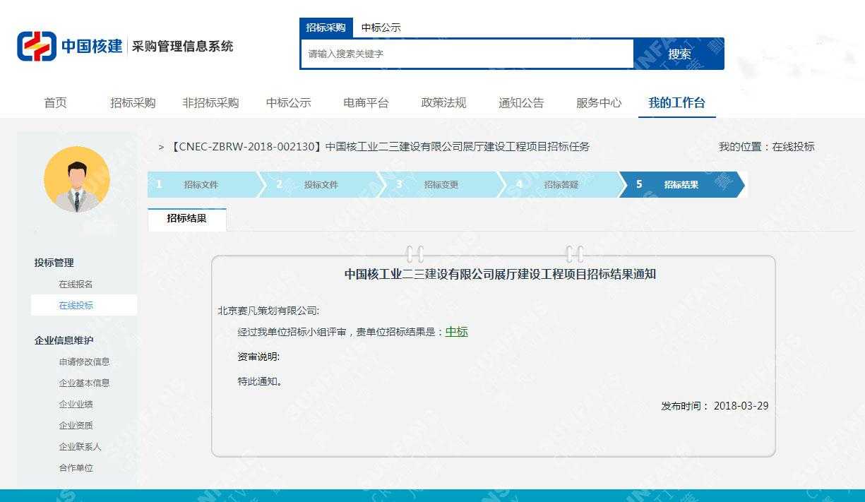 賽凡首頁 >>新聞 >>COMPANY NEWS 公司動(dòng)態(tài) >>恭喜賽凡中標(biāo)中國核工業(yè)二三建設(shè)有限公司展廳項(xiàng)目