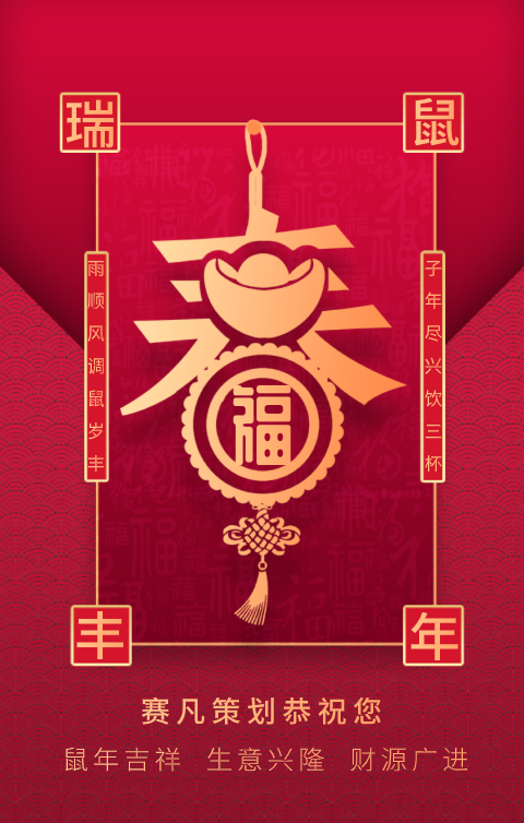 鼠年到來(lái)之際,根據(jù)國(guó)家相關(guān)部門關(guān)于2020年春節(jié)假期安排通知,2020年1月21日-2010年2月30日放假,1月31日(正月初七)正常上班。 特此通知 賽凡策劃恭祝大家新春快樂(lè),萬(wàn)事如意!