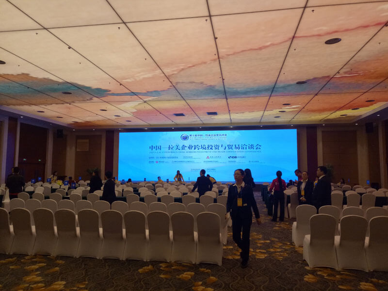 會上,每桌配備1名翻譯和1名談判助理,協(xié)助中拉企業(yè)“一對一”順暢對接,雙方可以用桌上電腦實(shí)時查詢對方“家底”,場面異常壯觀、火爆。在熱鬧的大廳里,在不同的膚色、不同的語言之間,統(tǒng)一著裝的“翻譯黃”架起雙方溝通的橋梁。