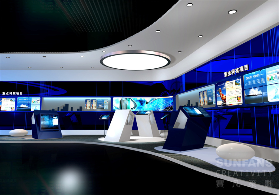 科技園展廳設(shè)計要注重長遠規(guī)劃,賽凡設(shè)計力求打破傳統(tǒng)企業(yè)展示風(fēng)格,更加注重展廳的體驗感和互動性,應(yīng)用了較多的高科技手段,綜合以多媒體影像、燈箱、模型、浮雕等手段,結(jié)合展示內(nèi)容,營造出了科技、現(xiàn)代的展示風(fēng)格。