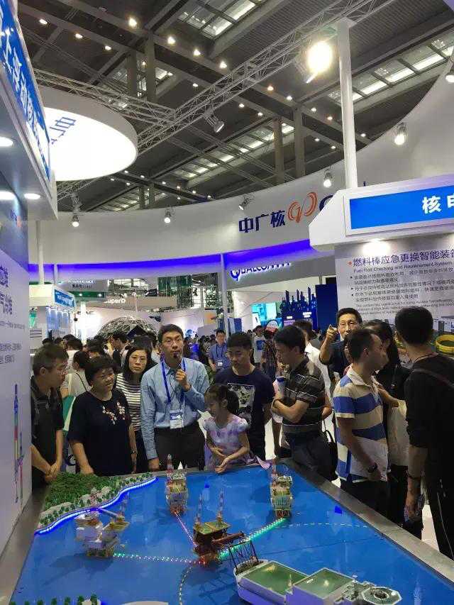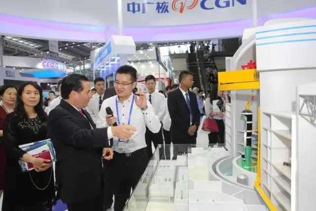 墨西哥大使館駐廣州總領事參觀中廣核展臺,某英語八級男神正和總領事談笑風生中。