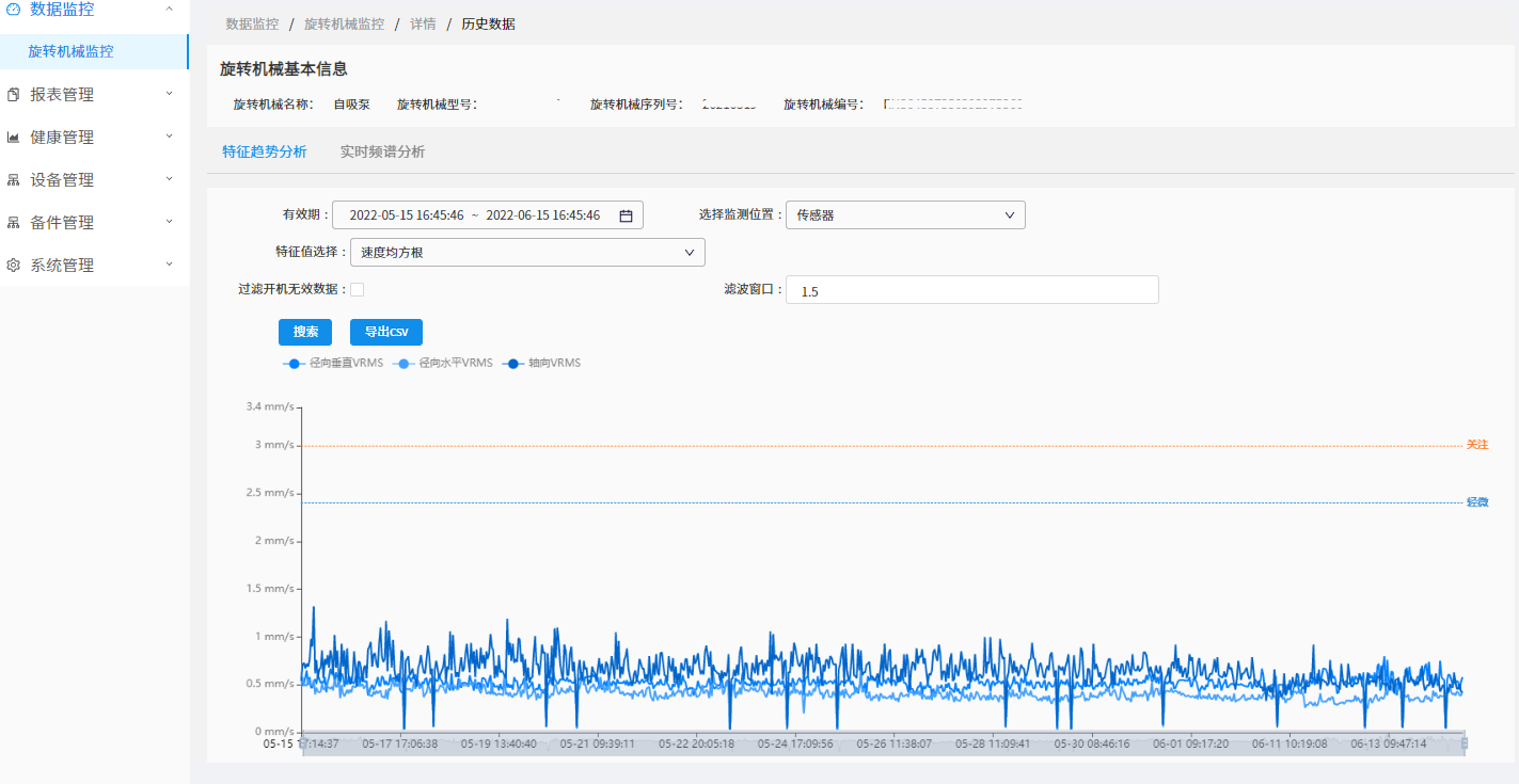 實時振動波形/特征值